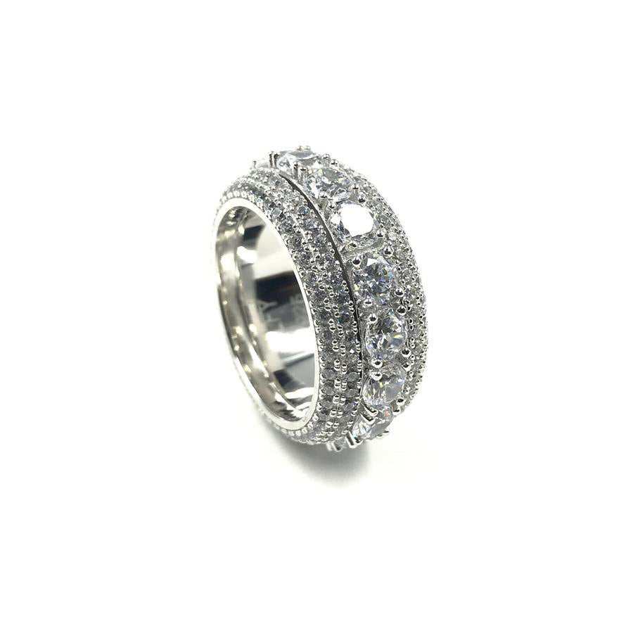 White Gold. 925 Sterling Silver Iced Out eternity band three rows Rotating spinner ring as seen on LIL UZI VERT, LIL PUMP and MIGOS.