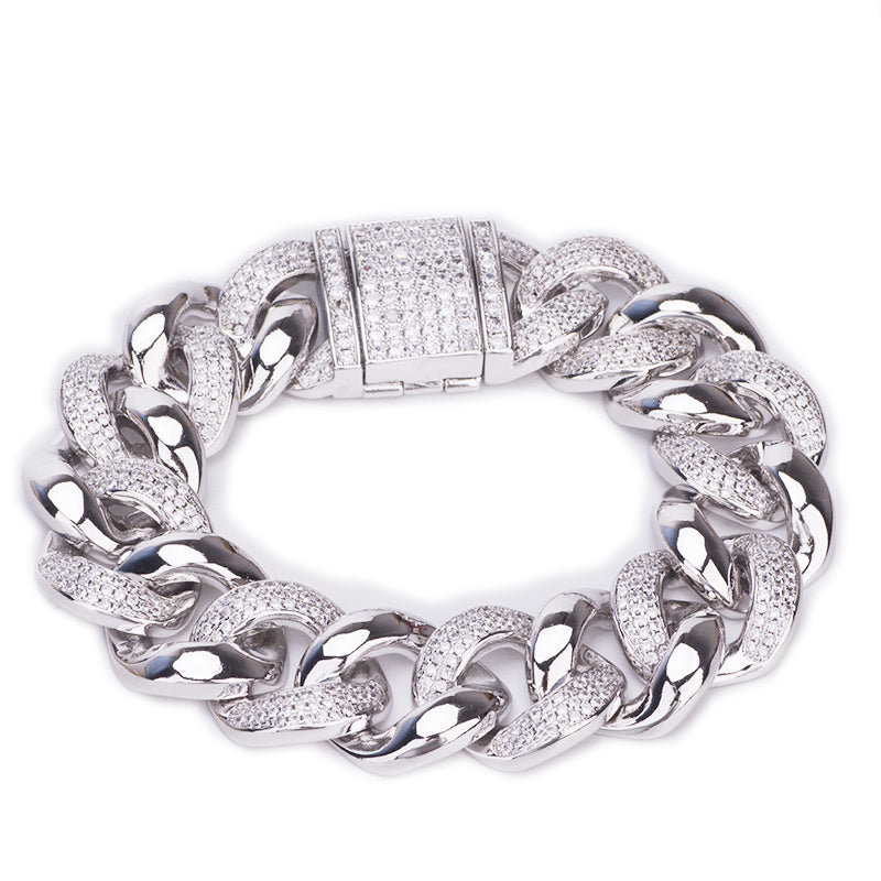 19mm part Iced Miami Cuban Bracelet White Gold