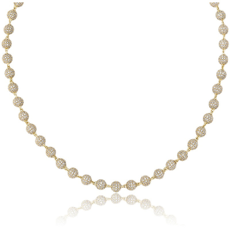 Micro pave, solid, special clasp, custom made 8mm fully iced diamond beads necklace chain