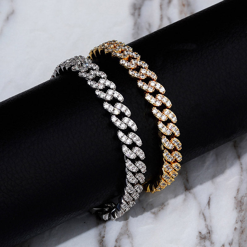 9mm cuban link chain bracelet/ankle chain - Yellow Gold