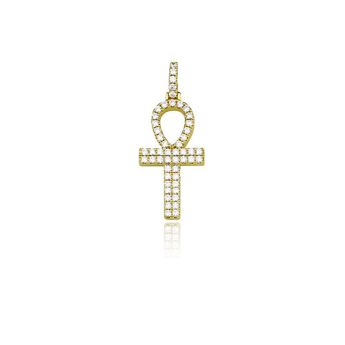 Inspired by a young generation from the Eastern land overseas, a fine diamond Ankh with class is born. Its thin design gives it a soft and exquisite feel to the touch to anyone who bears it. A matching chain is included. Micro pave setting. Height approximately 30mm tall.