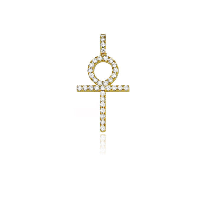 Inspired by a young generation from the Eastern land overseas, a fine diamond Ankh with class is born. Its thin design gives it a soft and exquisite feel to the touch to anyone who bears it. A matching chain is included. Total carat weight about 1.00 carat. Height approximately 46.8mm tall.