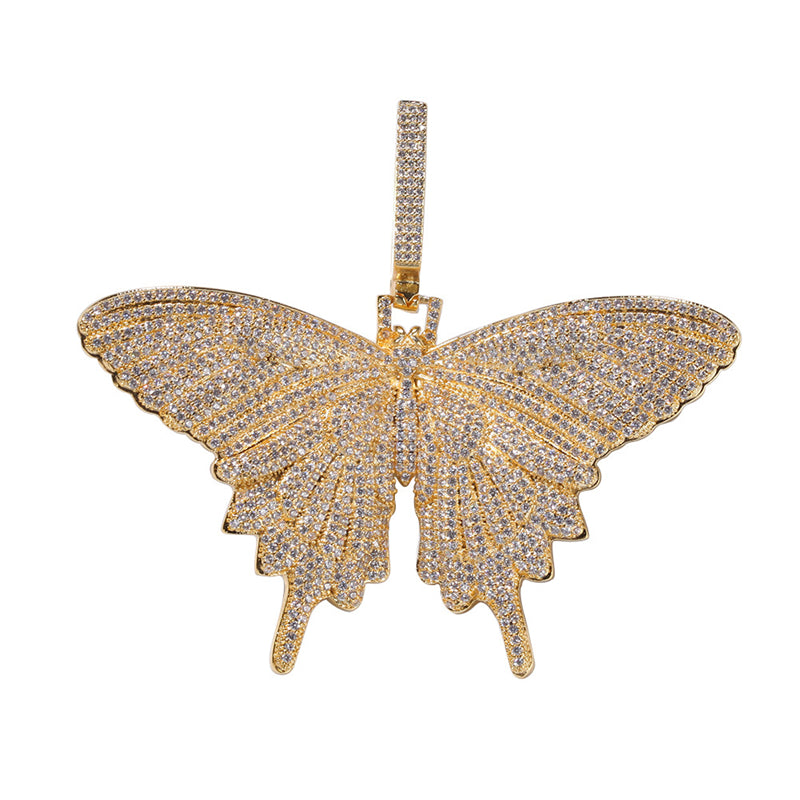 Butterfly pendant & necklace with free matching chain included. Fully iced, micro paved with details.