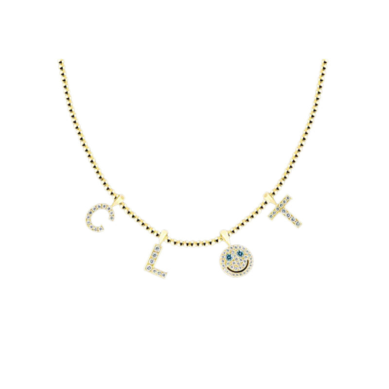 Custom A-Z alphabet letter emoji smiley face necklace choker chain