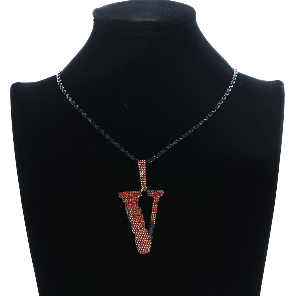 Custom Vlone V pendant necklace in diamonds, free matching rope chain included. As seen on LIL UZI, ASAP Bari, ASAP Rocky