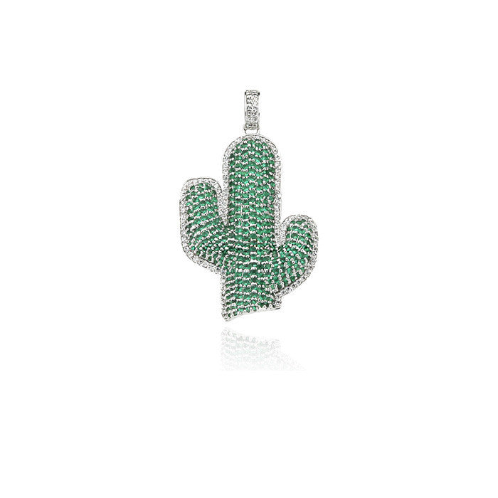 Custom Cactus travis necklace pendant with matching chain in Silver