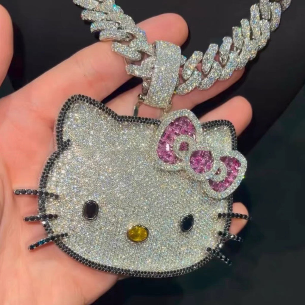 Iced Out Hello Kitty pendant necklace with free matching chain included.
