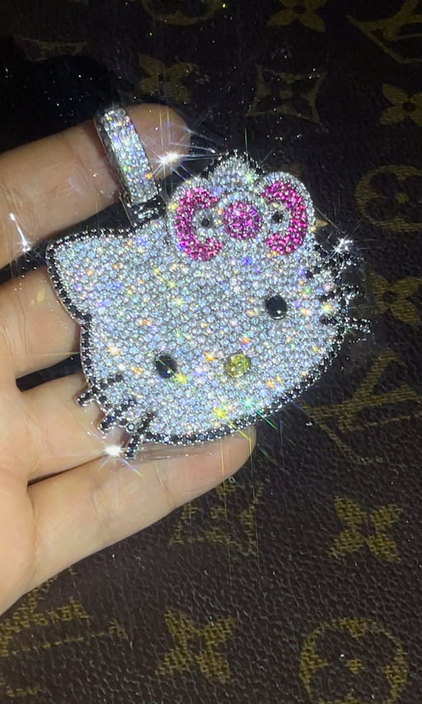 Iced Out Hello Kitty pendant necklace with free matching chain included.