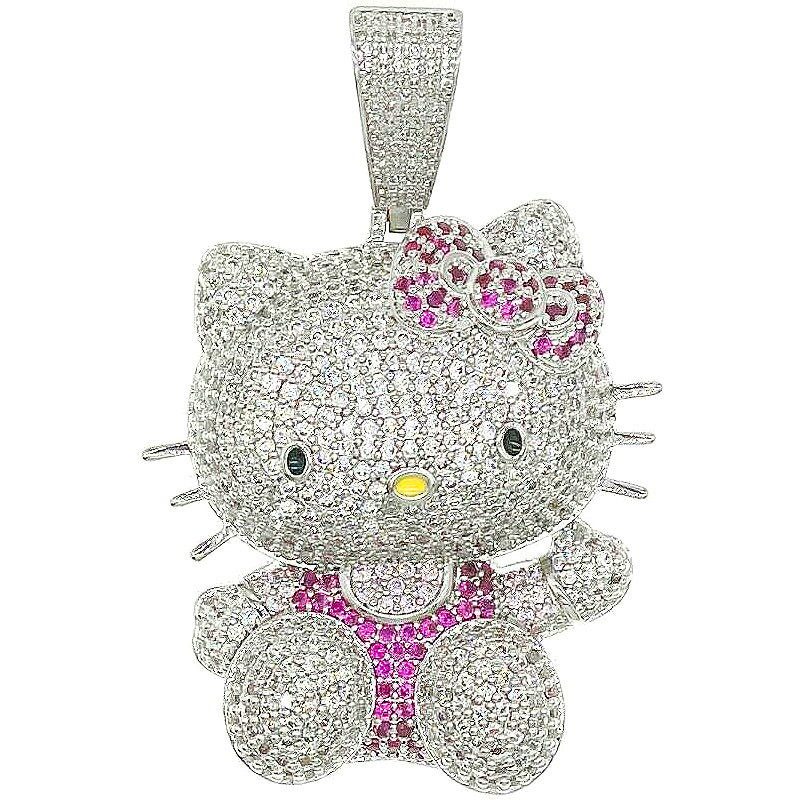 Iced Out Hello Kitty pendant necklace with free matching chain included.