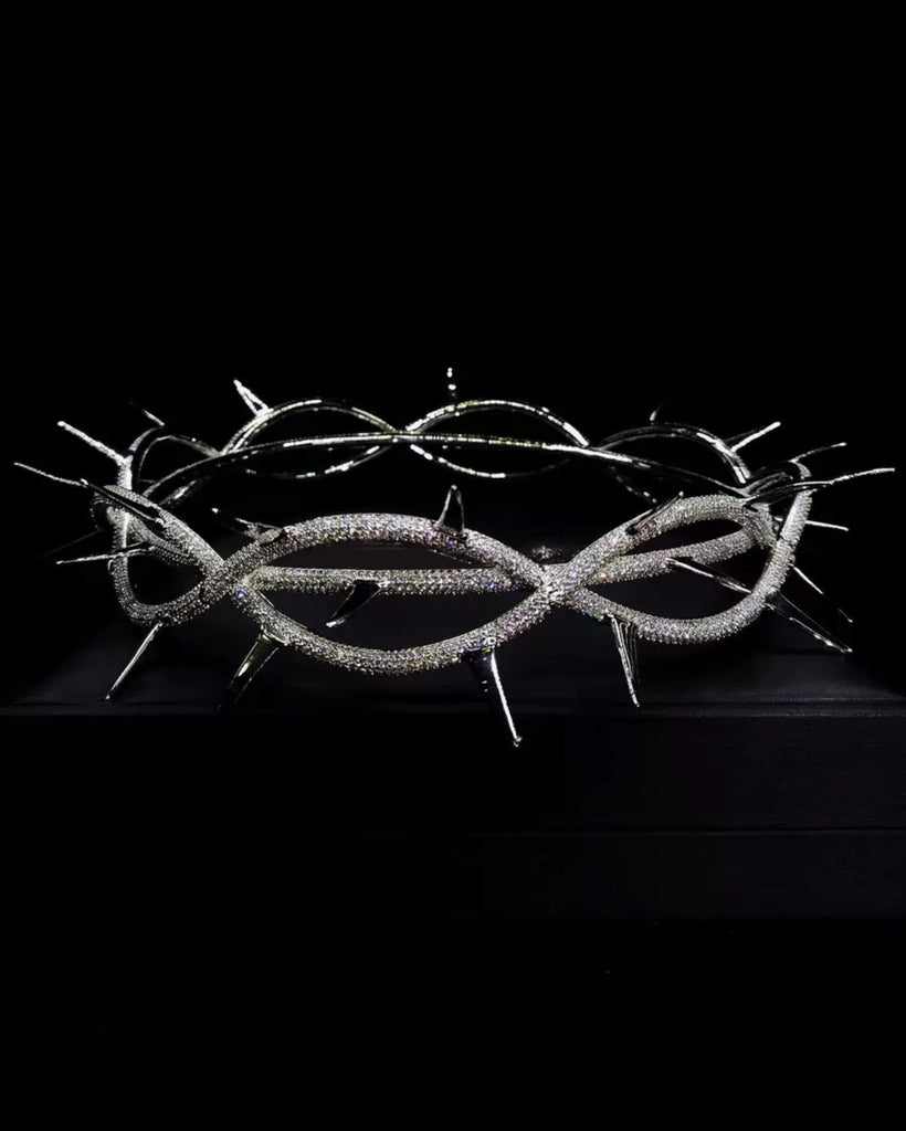 Introducing the Kendrick Lamar Crown of Thorns Fully Iced Handmade Exclusive Rare - a stunning, one-of-a-kind piece that celebrates the artistry and cultural impact of this legendary hip-hop icon. Crafted with the utmost precision and attention to detail, this exquisite accessory features a stunning 320g crown adorned with over 5,000 micro-paved set round stones in a brilliant white hue.