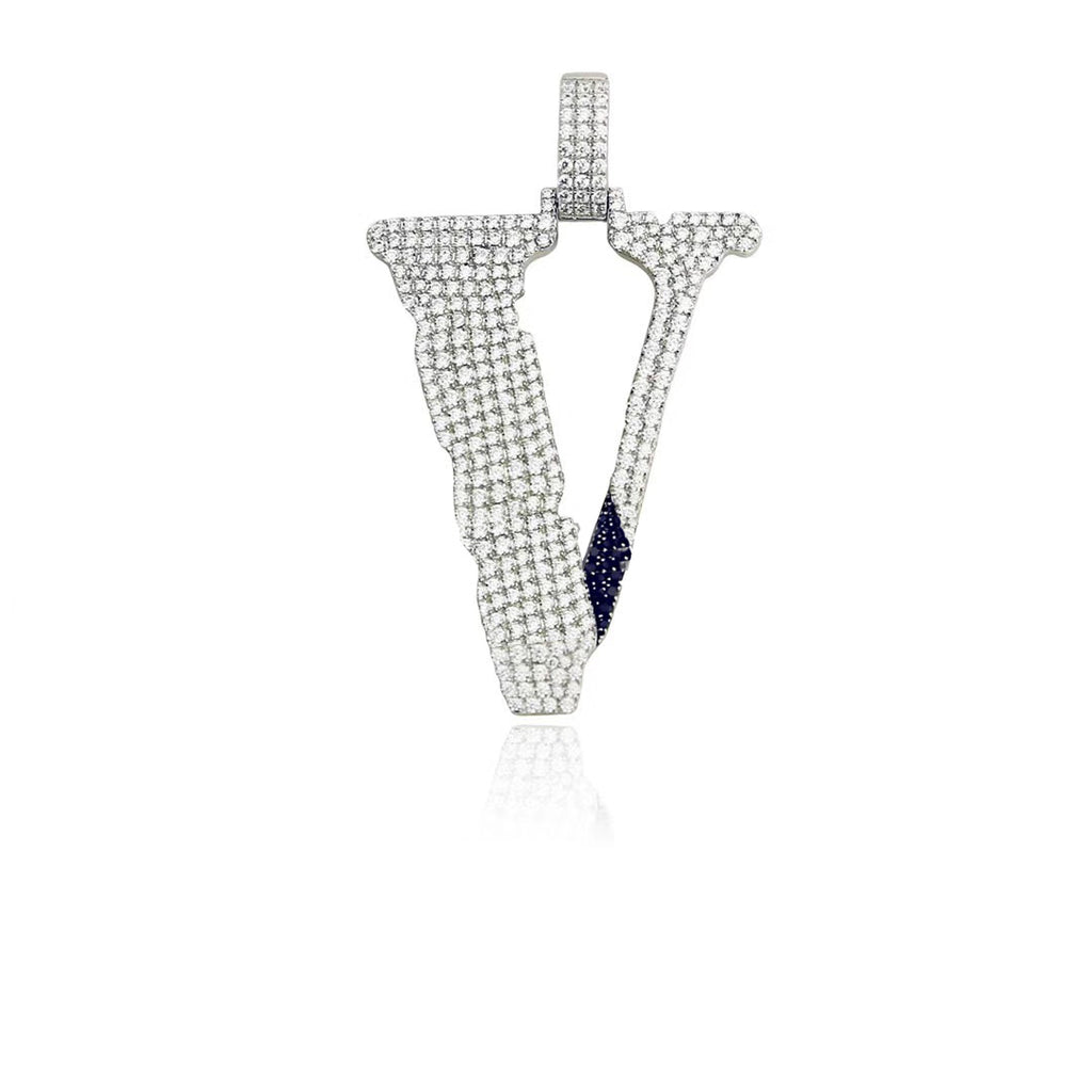 Custom Vlone V pendant necklace in diamonds, free matching rope chain included. As seen on LIL UZI