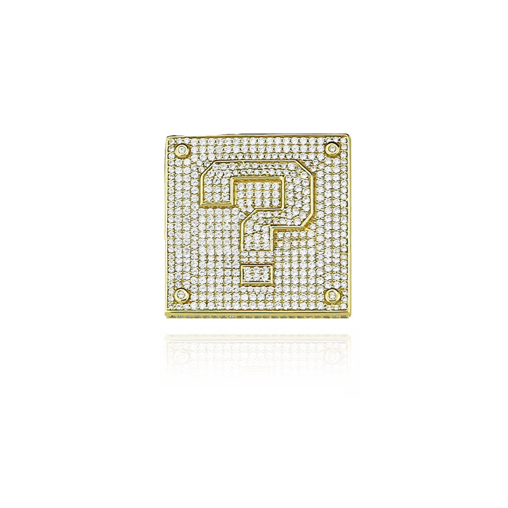 Custom Mario bros question block pendant necklace in gold and diamonds, free matching chain included.