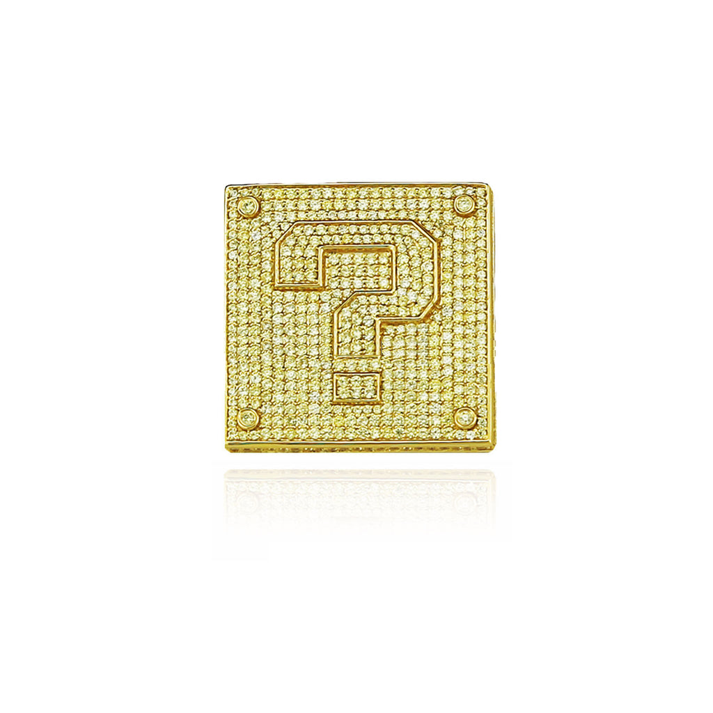 Custom Mario bros question block pendant necklace in gold and yellow diamonds canary, free matching chain included.