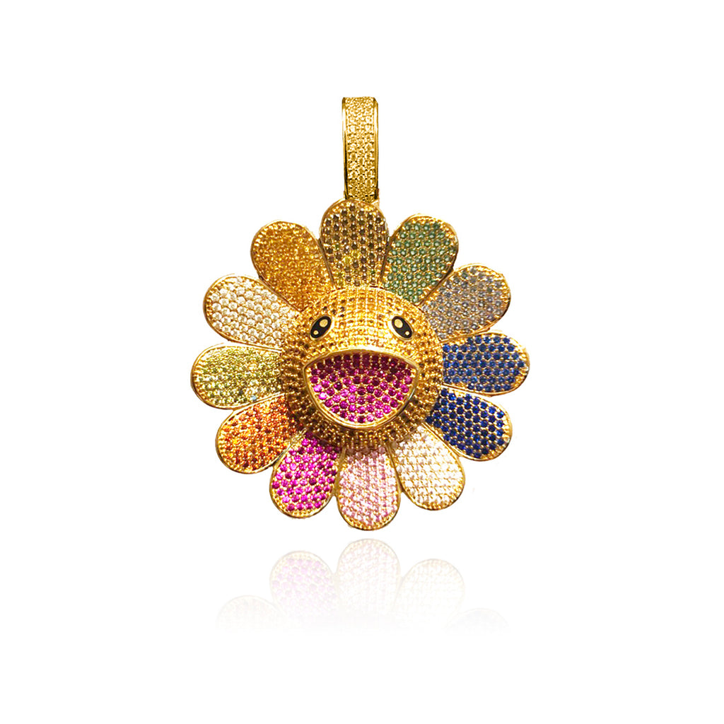 Custom Murakami Flower Fidget spinner pendant with matching chain multicolored