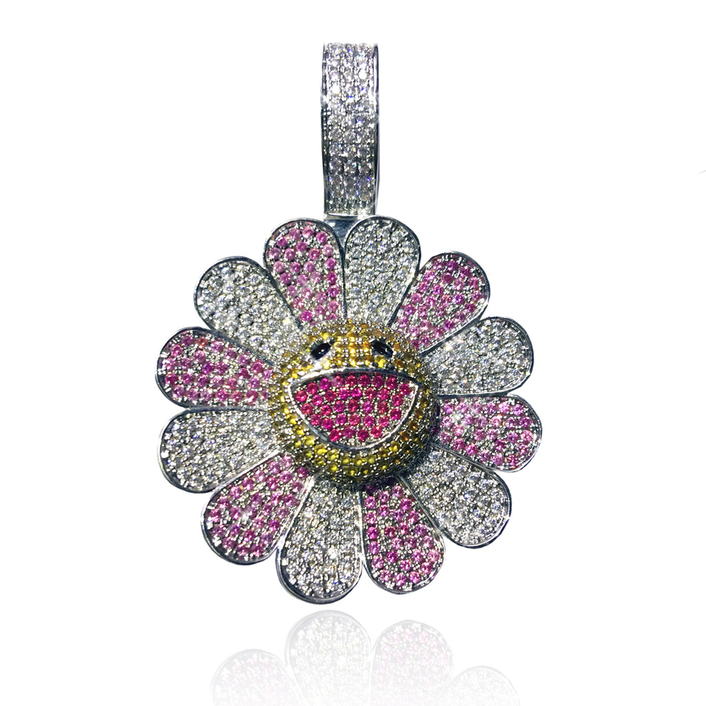 Custom Murakami Flower Fidget spinner pendant with matching chain Silver