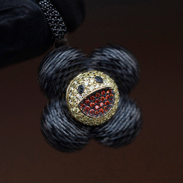 Custom Murakami super flat first love Flower Fidget spinner pendant with matching chain - Black