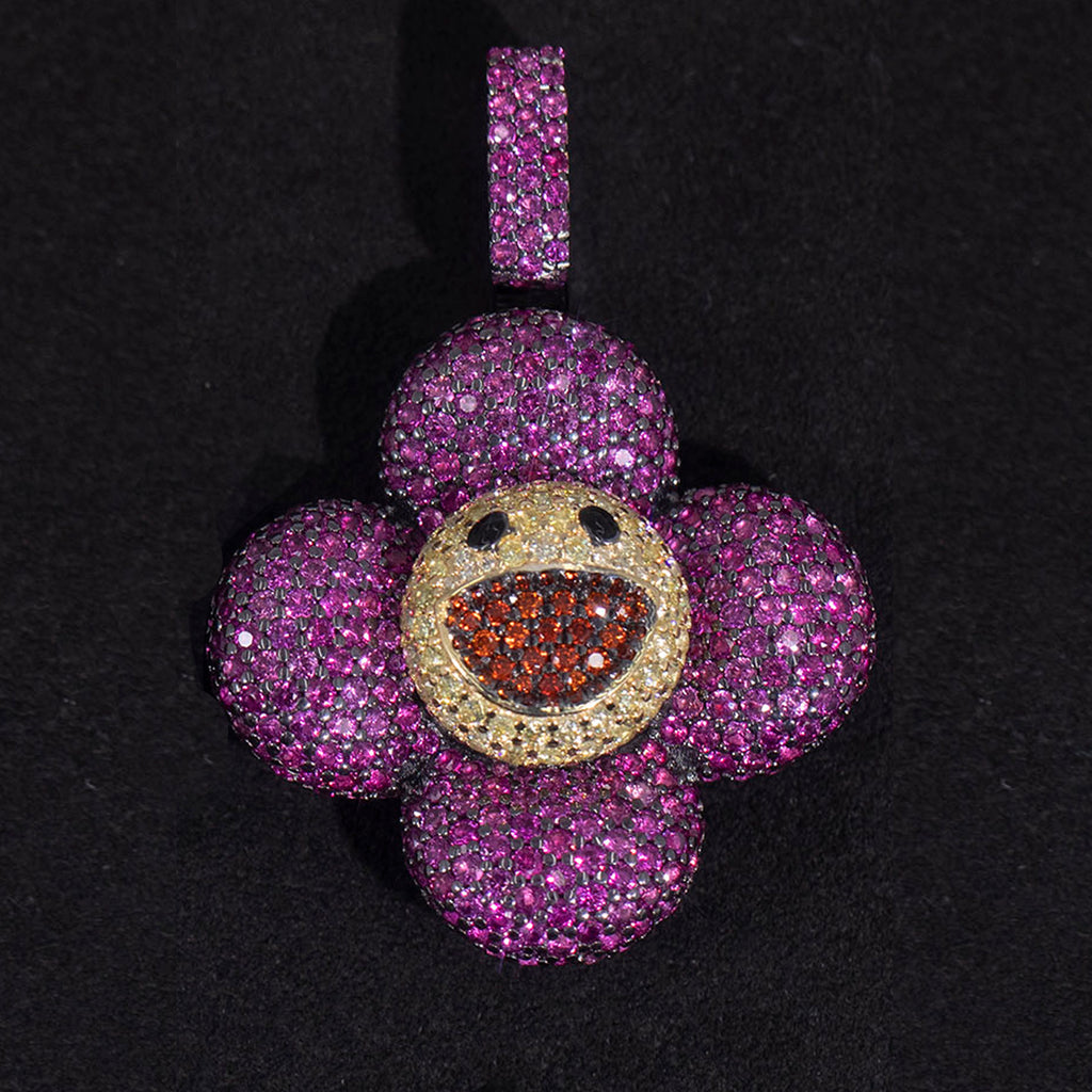 BG custom Murakami-inspired flower fidget spinner pendant with free matching chain in multicolored