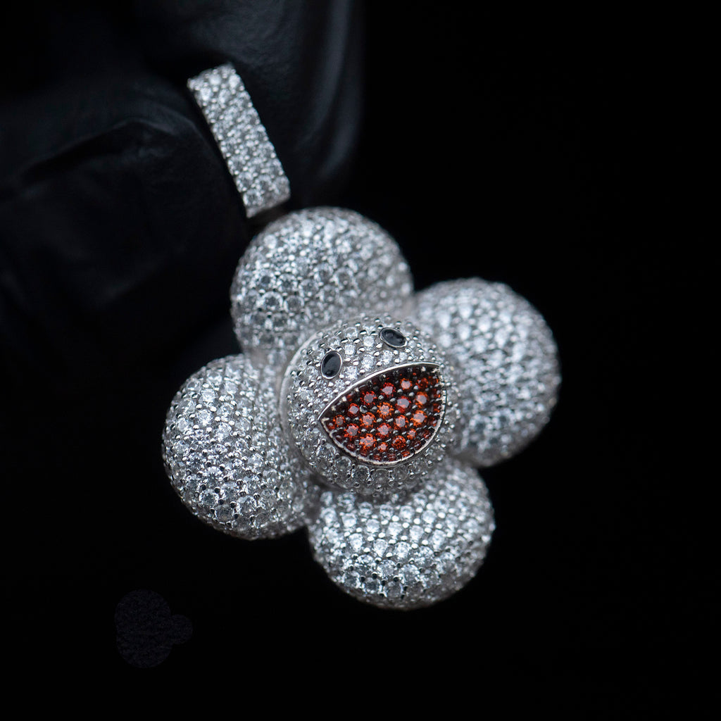 Custom Murakami super flat first love Flower Fidget spinner pendant with matching chain - White