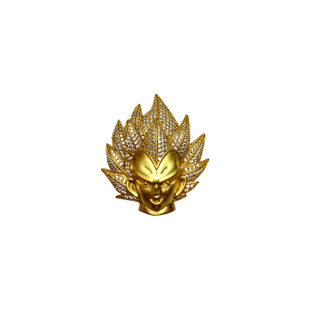 Custom Vegeta pendant necklace in gold and diamonds, free matching rope chain included.