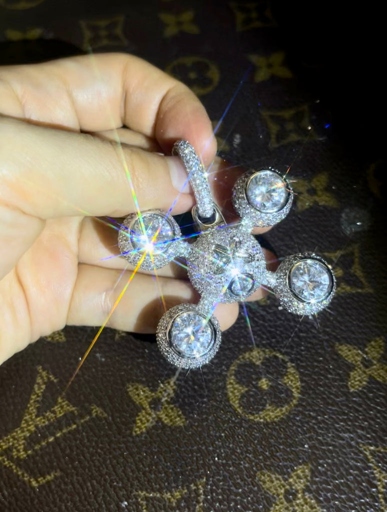Custom drake Fully iced Sphere Leg Pendant - Silver
