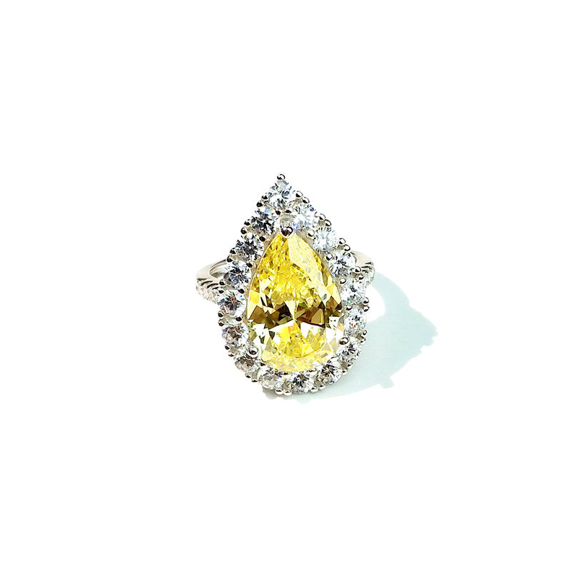 as seen on Kylie Jenner Pear shaped canary gemstone engagement ring