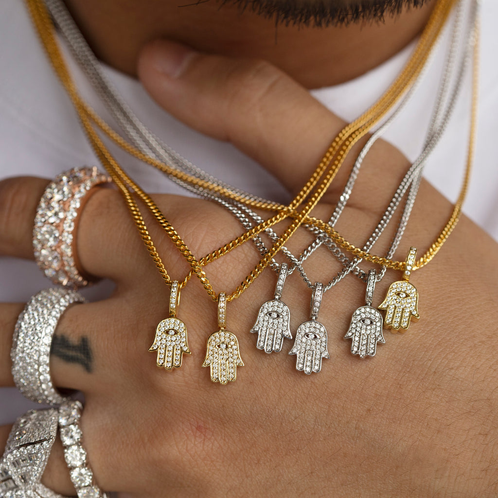 Pico hamsa piece pendant necklace with matcing chain in white gold or yellow gold