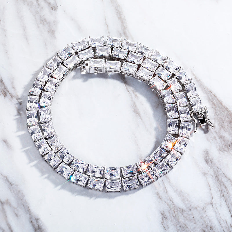 Rectangle radiant cut tennis link necklace chain short choker