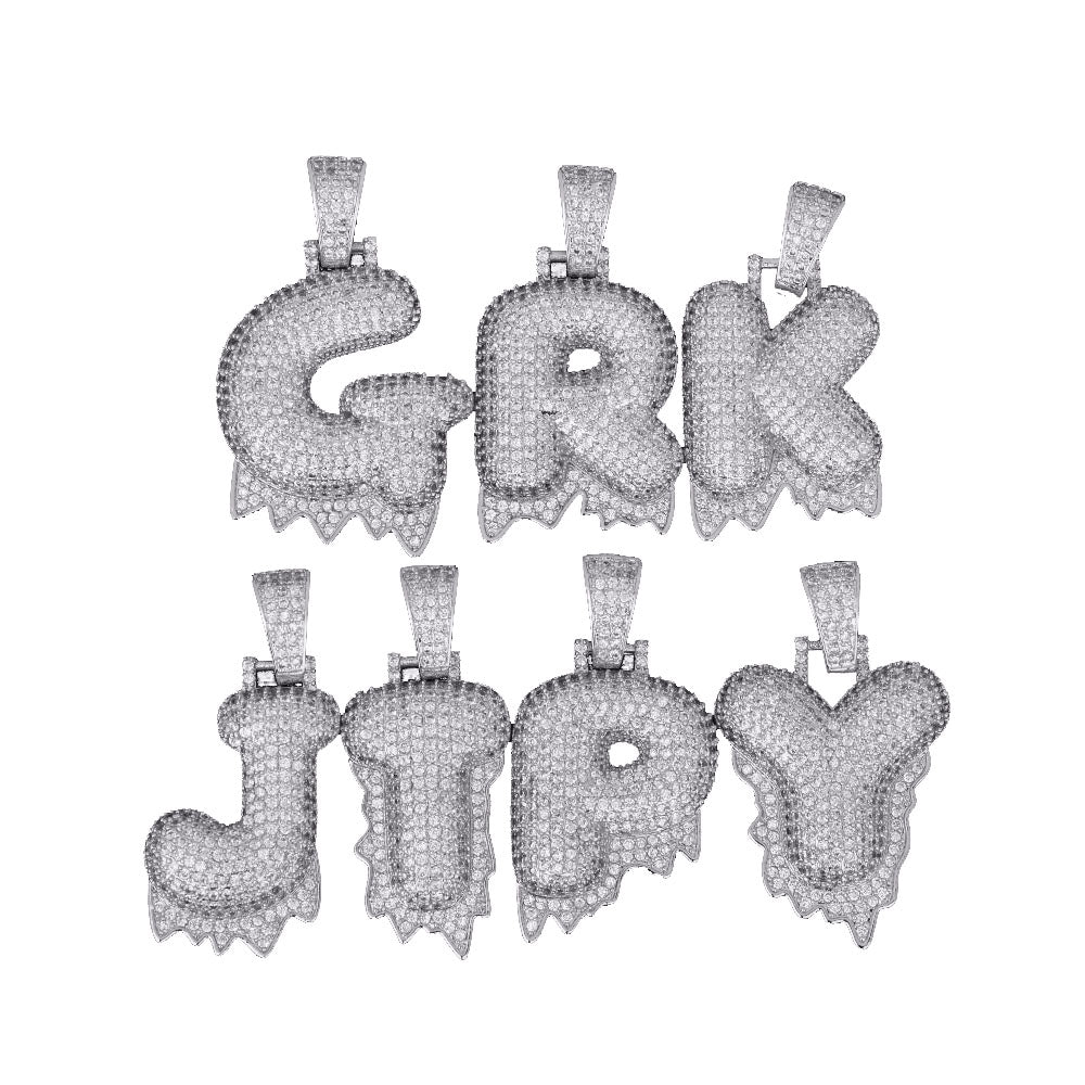 White Gold Custom Bubble Letters Initial A-Z Charm red blood flame dripping as seen on Cardi B