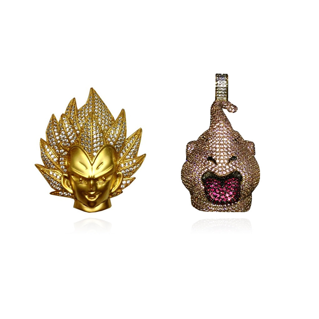 Custom Vegeta pendant necklace in gold and diamonds, free matching rope chain included.