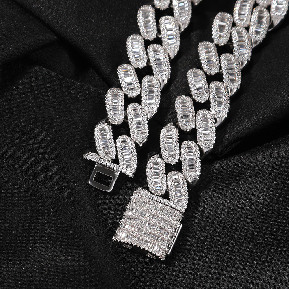 Combo of round and baguette fully iced cuban link miami cuban link necklace chain