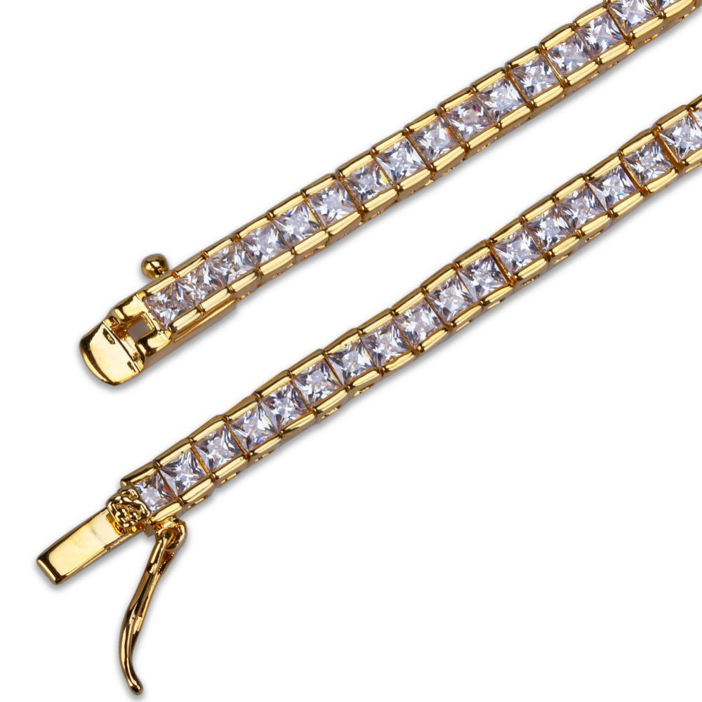 4mm Tennis link chain necklace princess cut 1 row Yellow Gold