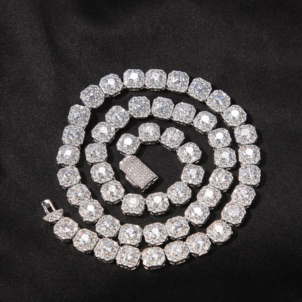 9mm Halo two row Solitaire tennis link necklace - White Gold