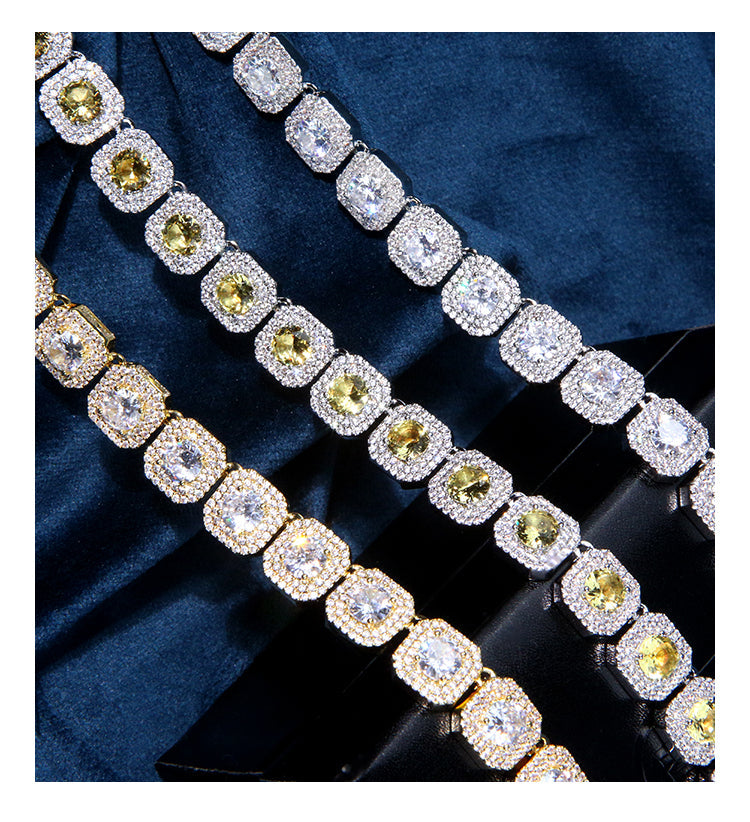 9mm Halo two row Solitaire tennis link necklace - Yellow Gold