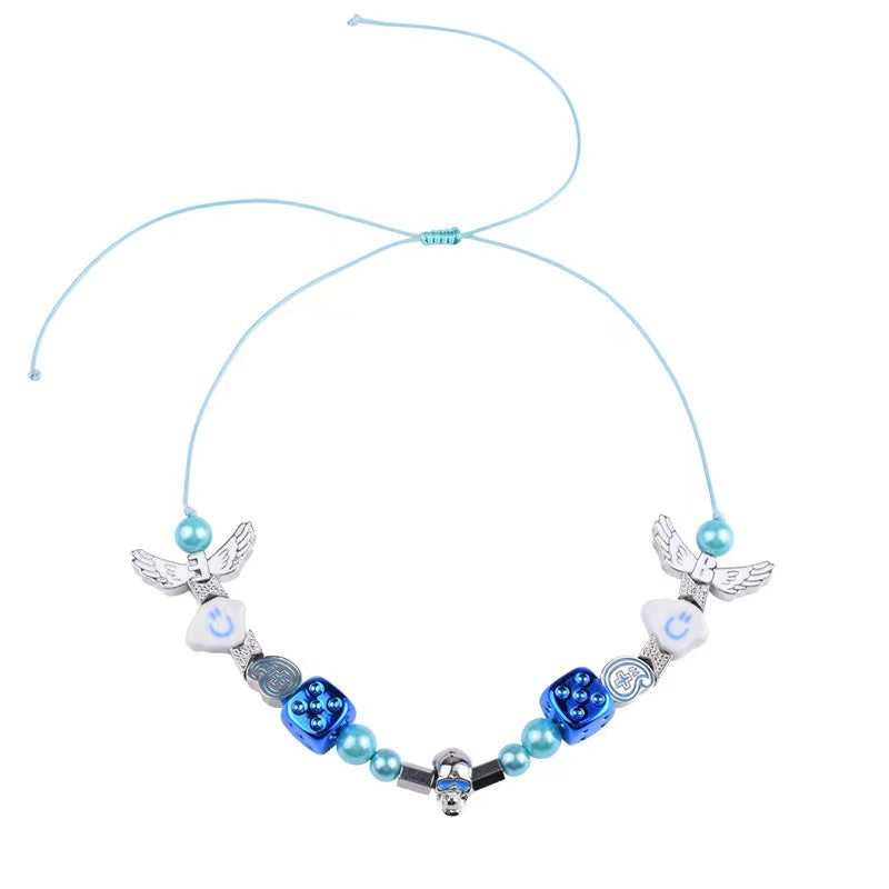 ASAP Rocky dice choker pearl necklace set Blue angel