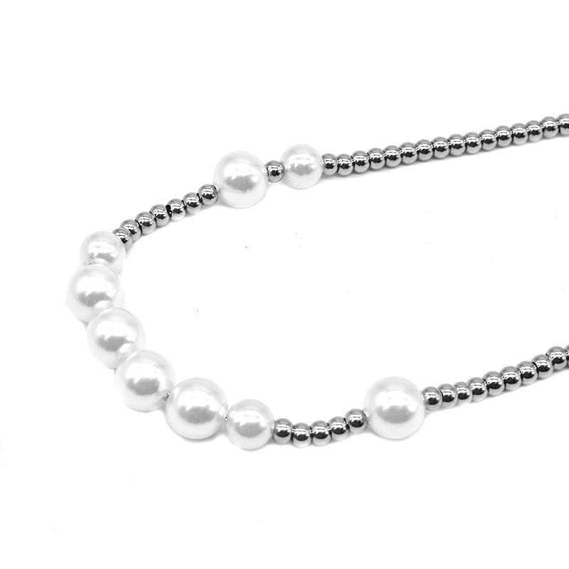Silver beads with glass beads pearl combo set as seen on ASAP Rocky and Pharrell etc.