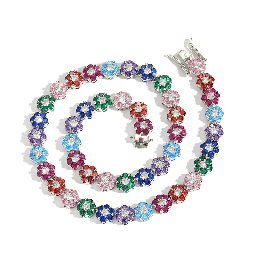 Fully iced daisy flower tennis link necklace chain - White Gold