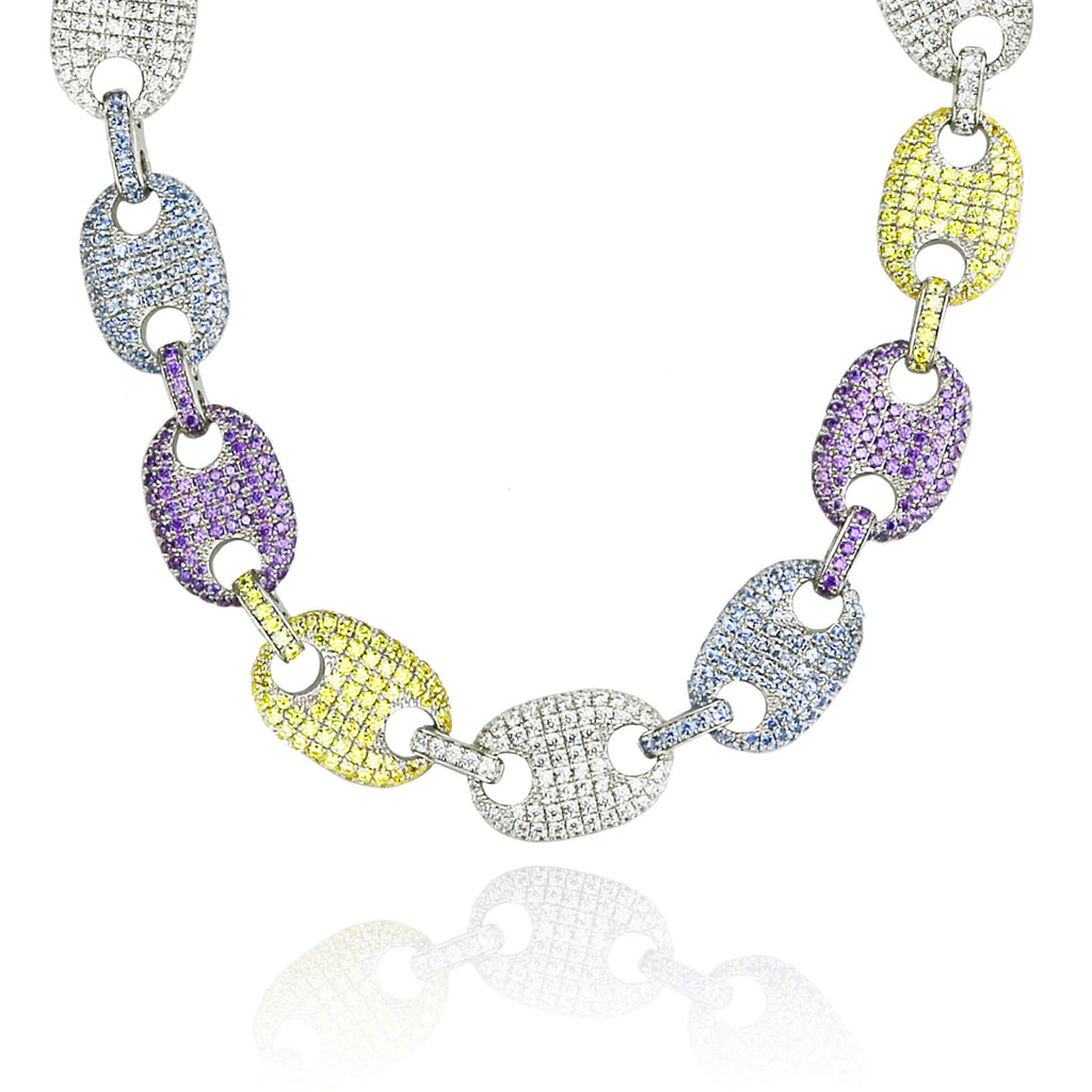 Fully iced gucci link chain necklace 18mm Multi-colored