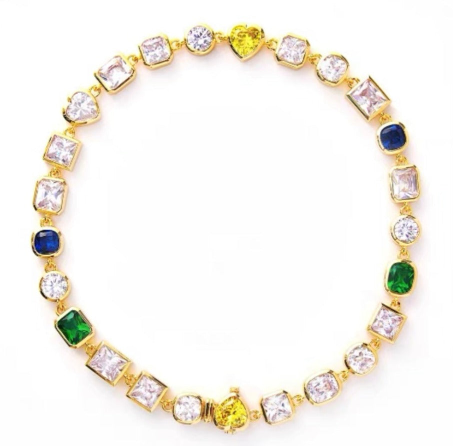 Infinity Stone-inspired multicolored interlaced chain necklace short choker - YELLOW GOLD