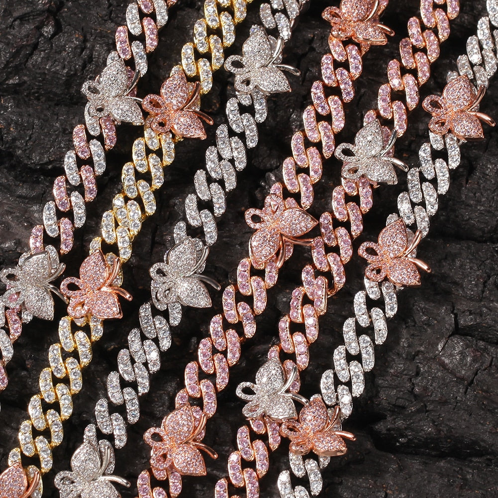 Featuring 4 butterfly charms on one 12mm miami cuban link chain short choker.