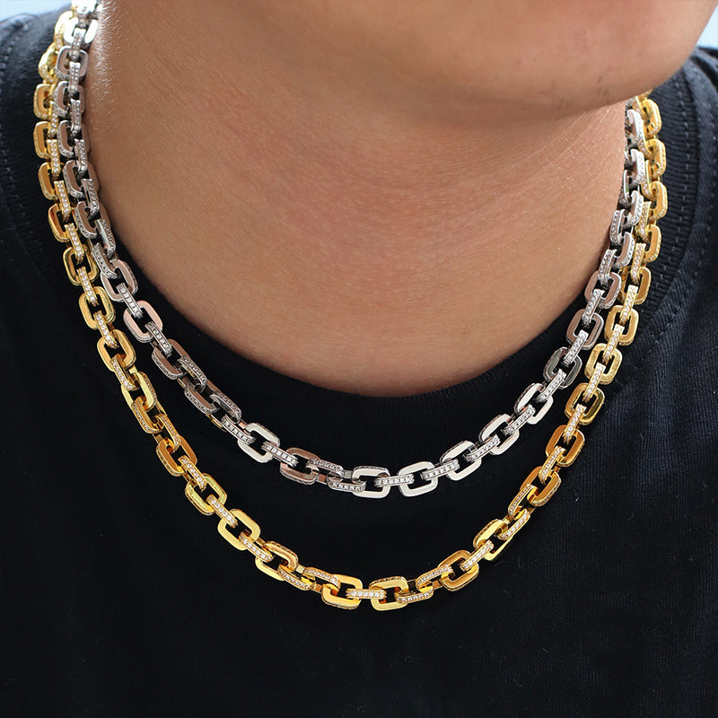 As seen as on Drake. 9mm hermes link chain in multi-colored is just like what you see on rappers except this version is made with lab created simulated diamonds. The sparkle and shine is incredible on this piece. Get spotted from a block away with this amazing chain. Comparing to the gucci link or others, this is one solid piece you get to wear on a daily basis. Order yours today.