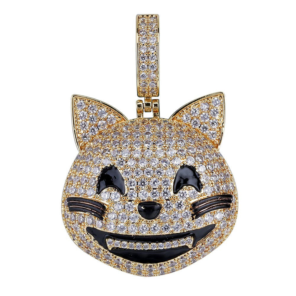 Iced Kitty cat Emoji pendant & necklace with free matching chain included.