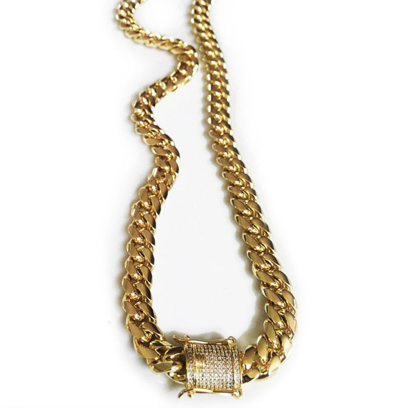 Due to popular demand, we have came up with the plain cuban link with extra touch. Custom made full diamond clasp, micro pave set vvs simulated diamond.