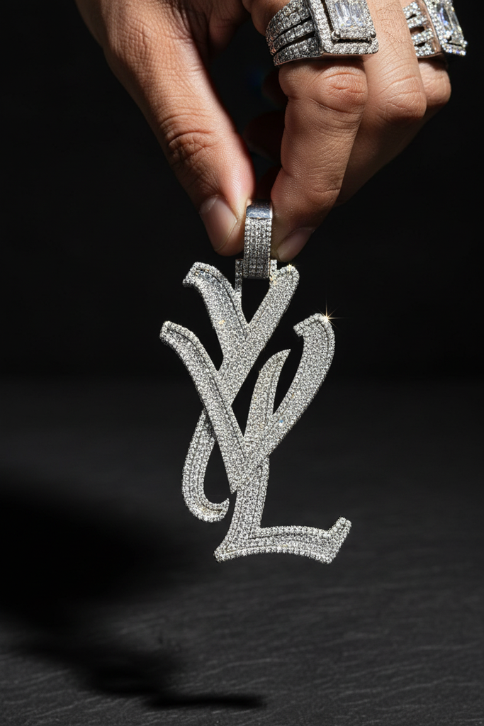 Custom fully iced YVL pendant as seen on Playboi Carti Ken Carson baby size