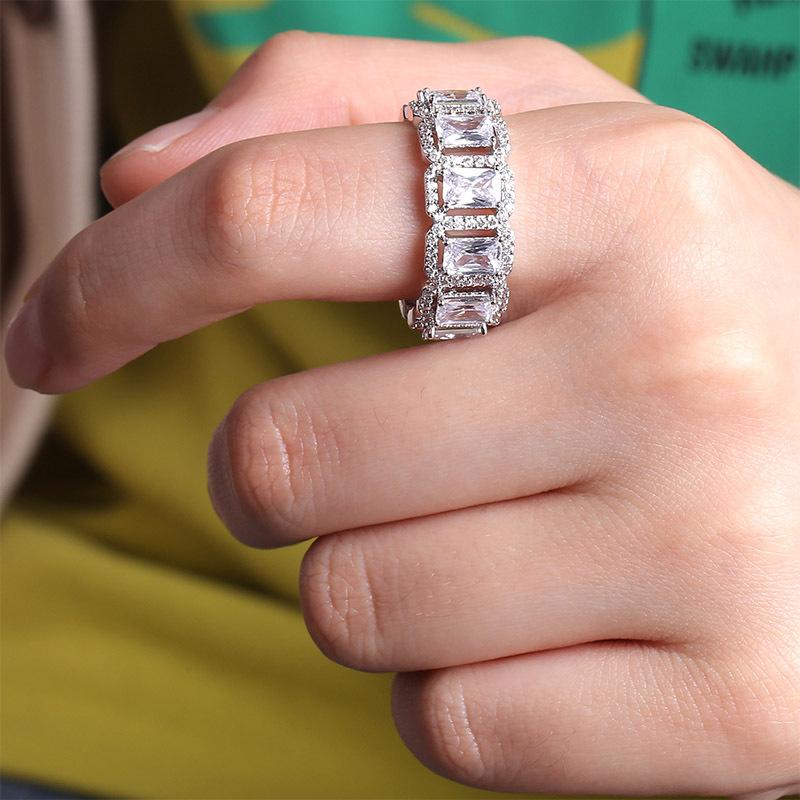 Halo rectangle eternity engagement ring Kylie Jenner Travis gifted diamond ring