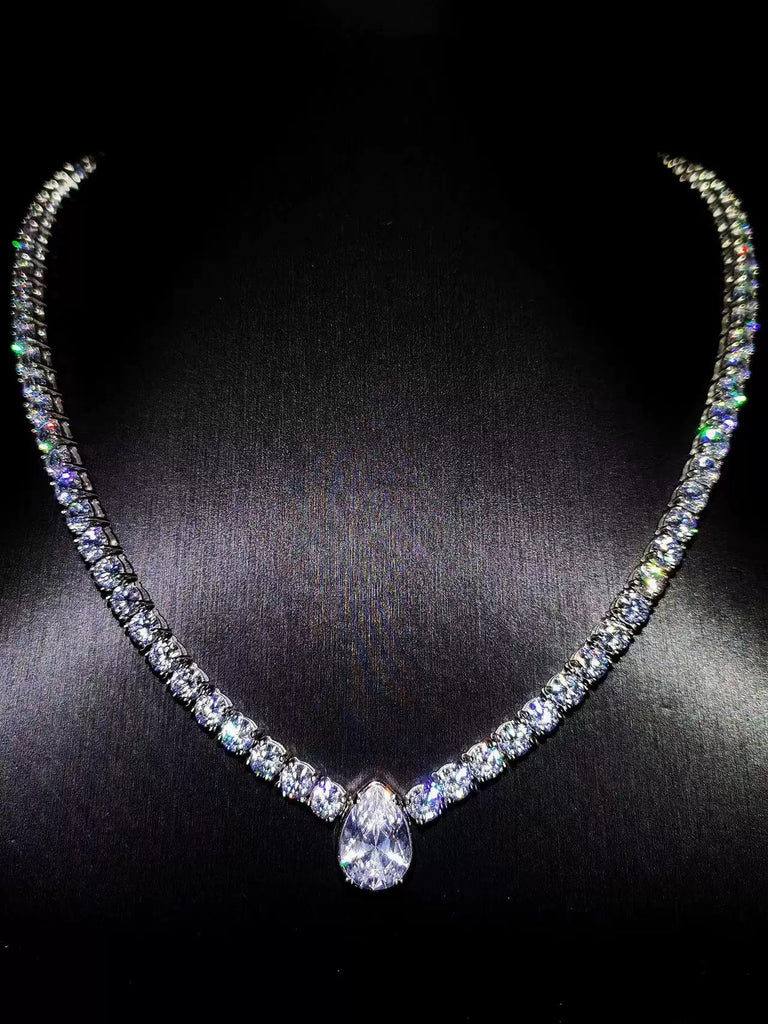 Playboi Carti birthday gift upside down cross St.Peter rosary teardrop diamond dangling choker teniis link chain AAA round stone