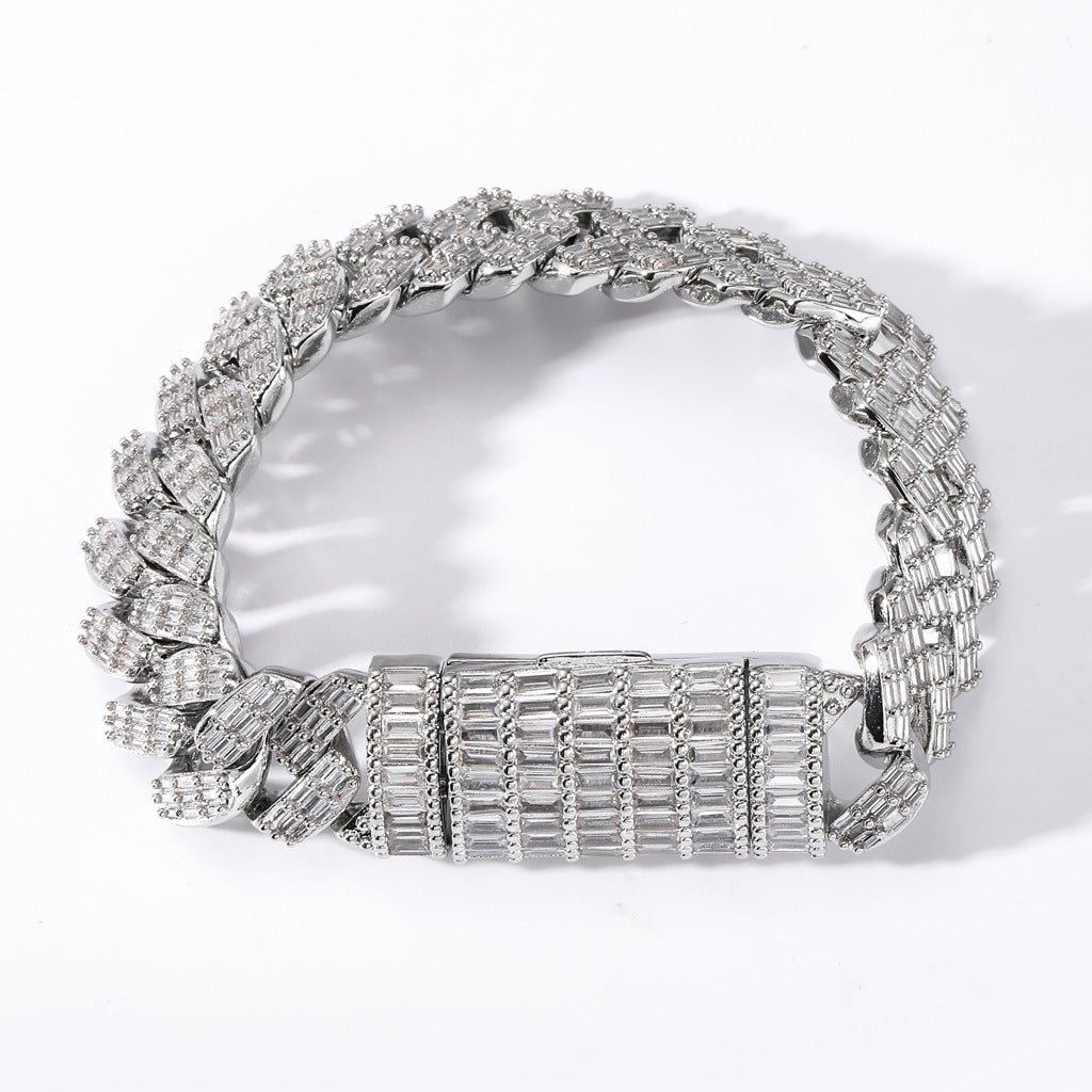 17mm fully iced baguette cuban link bracelet chain - White Gold